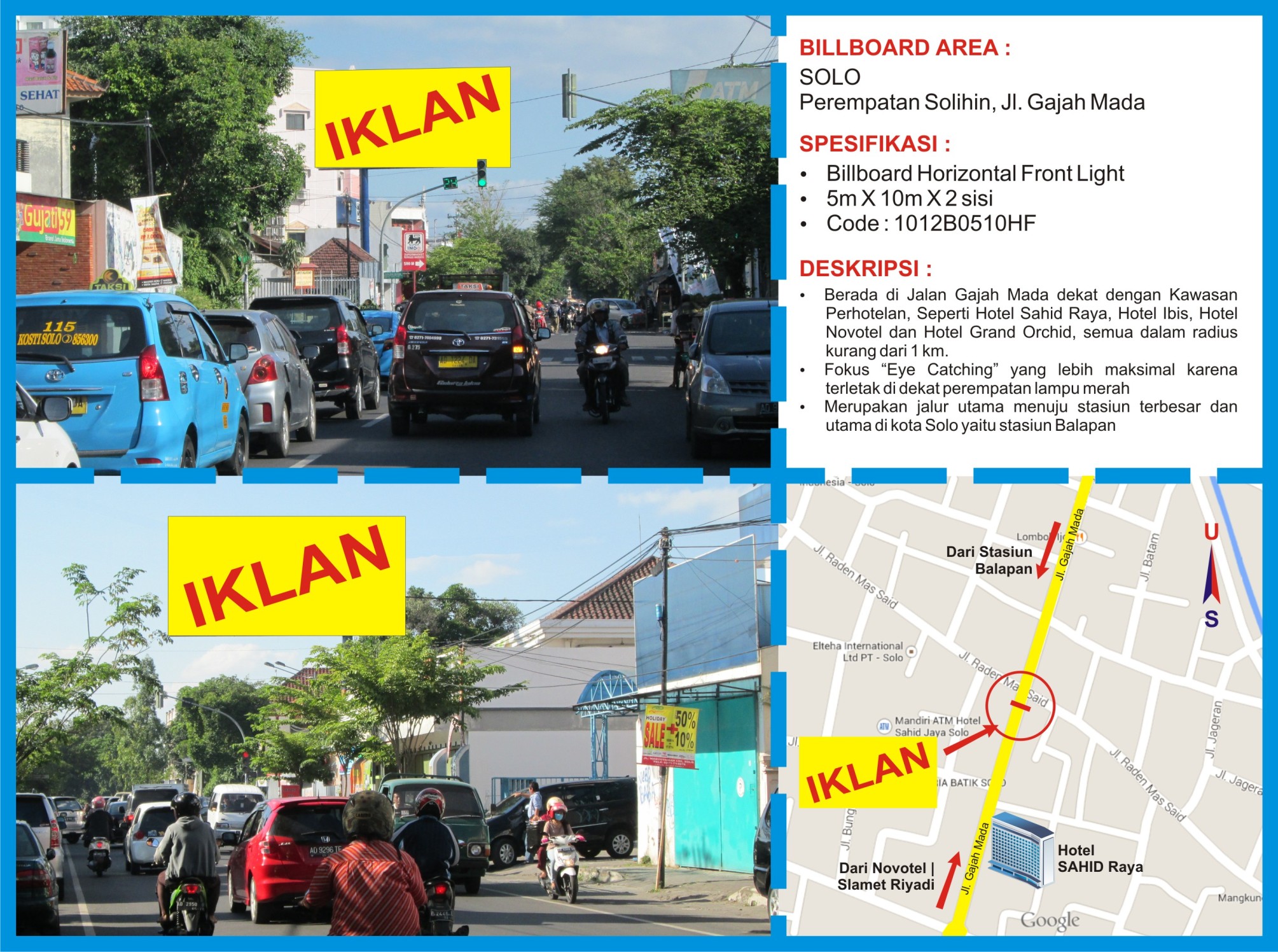 Billboard Solo - Perempatan Solikhin Jl.Gajah Mada 5x10m 2 Sisi Horisontal Bersinar Front Light