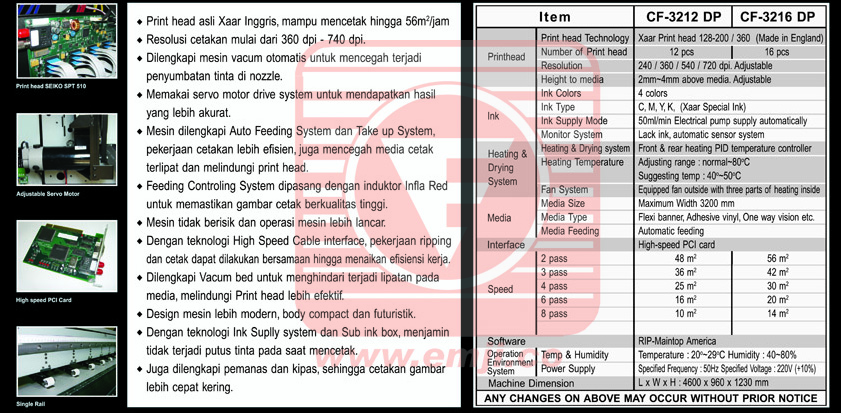 Print Head Type : XAAR 128 / 360 : 12 Head / 4 warna [ Resolusi : 740 dpi ]